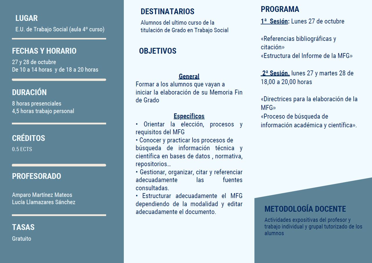 Curso para la elaboración del Trabajo Fin de Grado: 27 y 28 de octubre 2025