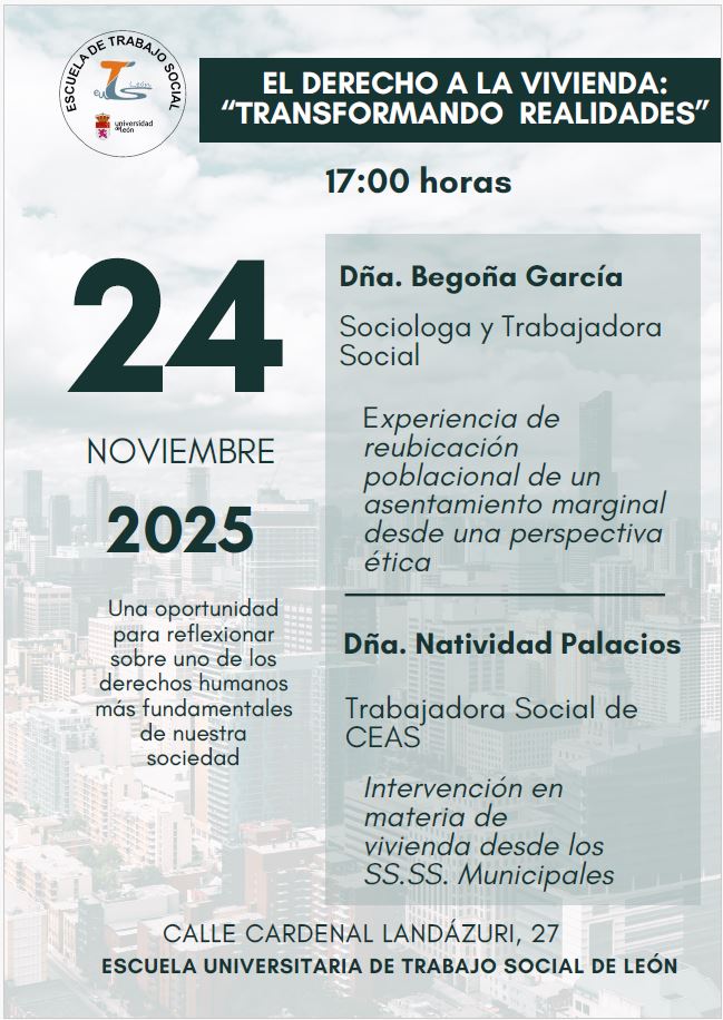 Co-organizado por la Escuela Universitaria de Trabajo Social, Concejalía de Mayores. Ayuntamiento de León, CREDEI León y Gerencia Territorial de Servicios Sociales de León.